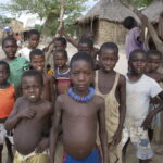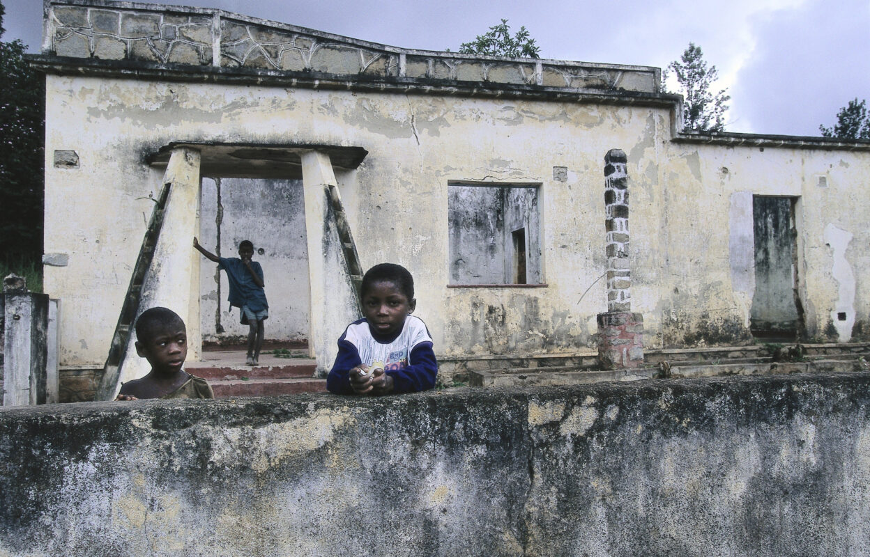 - Barn leker i ruinene av et hjem i nærheten av Gabela, Angola. Foto: Terje S. Knudsen/Equinor