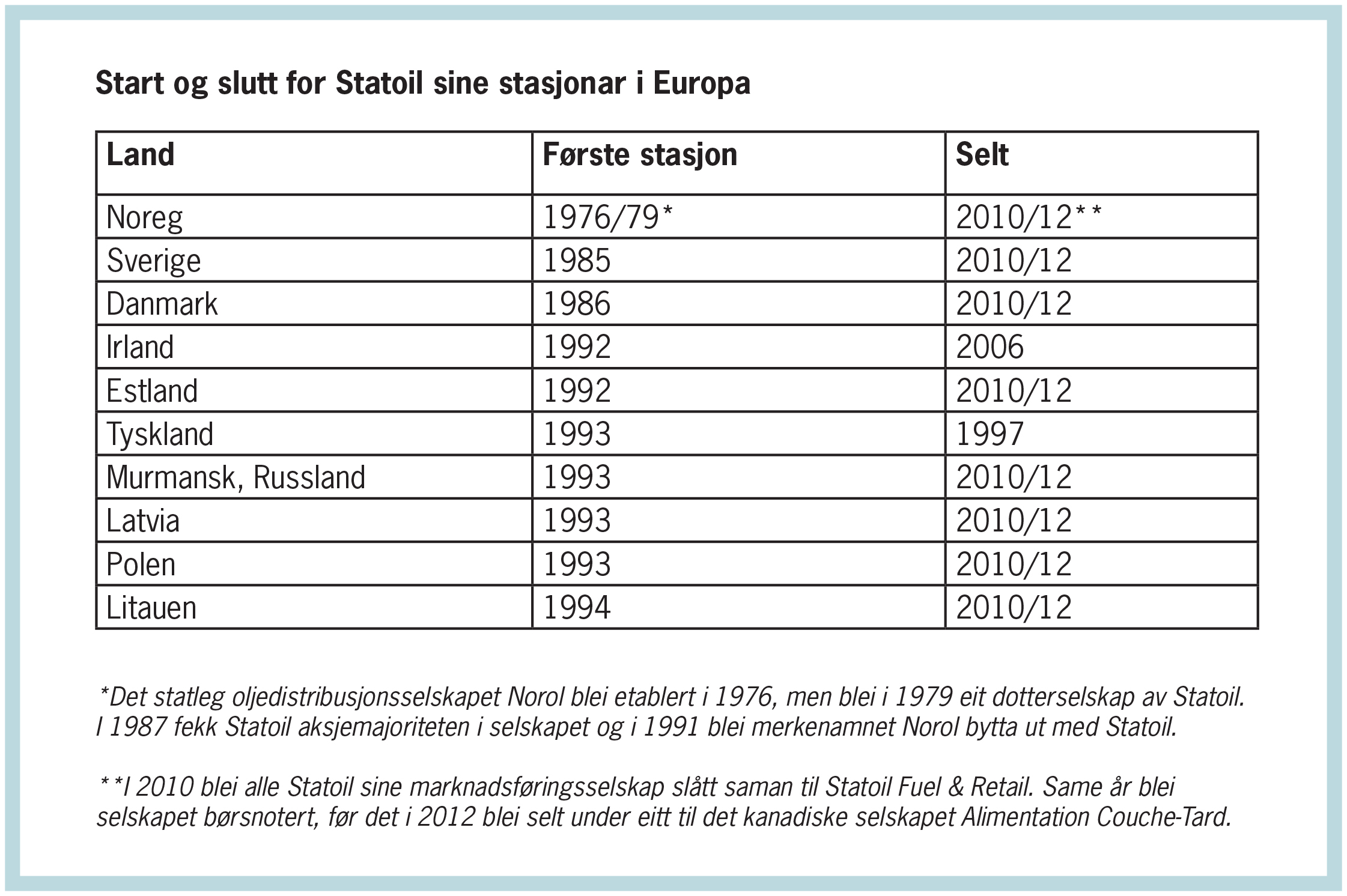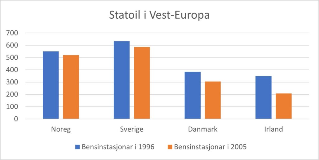 Statoil gjekk altså breitt ut då det bestemte seg for å etablere bensinstasjonar, fyrst i Skandinavia og så i både aust og vest. Etter kvart kom selskapet til den erkjenninga at det var lurt å fokusere på det selskapet kalla eit kjerneområde. Følgjeleg blei fyrst Tyskland og så Irland fjerna frå porteføljen.