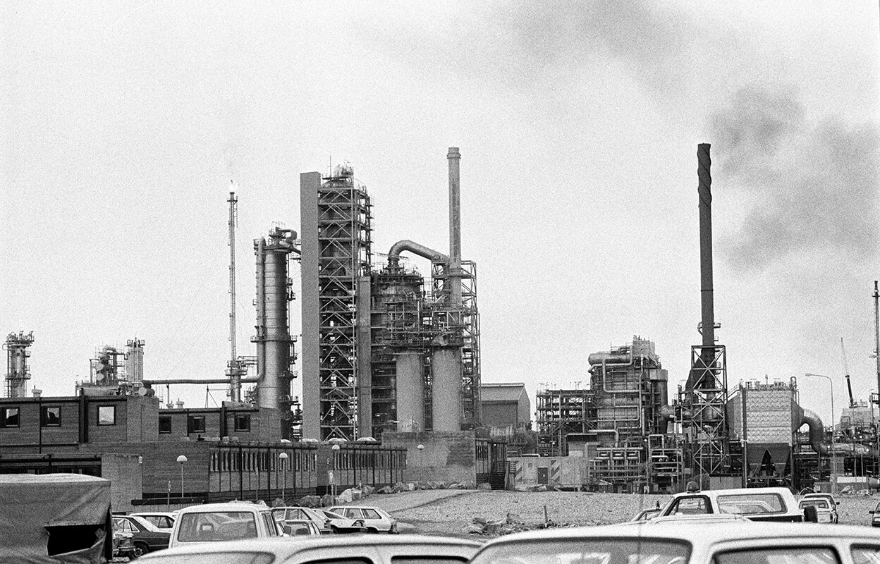 Arve Johnsen under befaring for pressen i oljeraffineriet på Mongstad i september 1987. Foto: Tor G. Stenersen