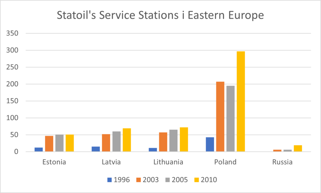 To put it a trifle facetiously, Statoil entered the four former Eastern Bloc members with a petrol pump in one hand and a neon sign in the other, bought land and started up service stations.