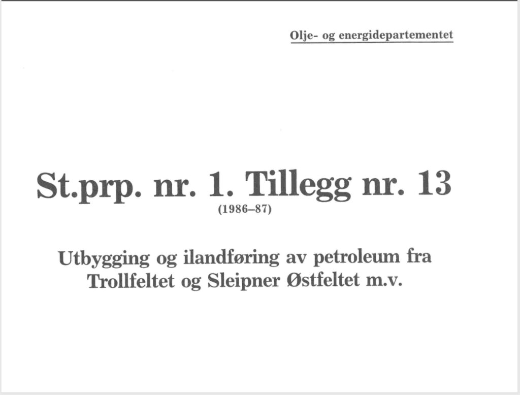 Proposition (Bill) to the Storting on developing and landing petroleum from Troll and Sleipner East.