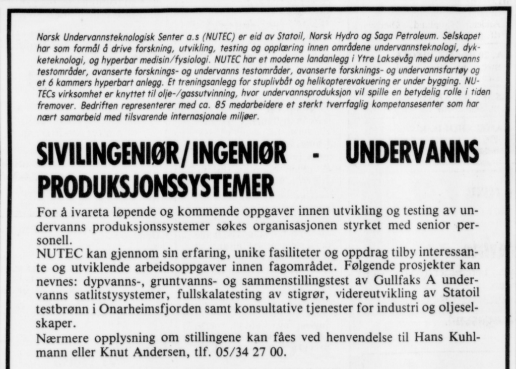 Statoil gave great emphasis to thorough testing of all equipment and connections for subsea systems on Gullfaks. This was done for deep water in the Onarheim Fjord south of Bergen and for shallow depths at the Norwegian Underwater Technology Institute in Bergen.