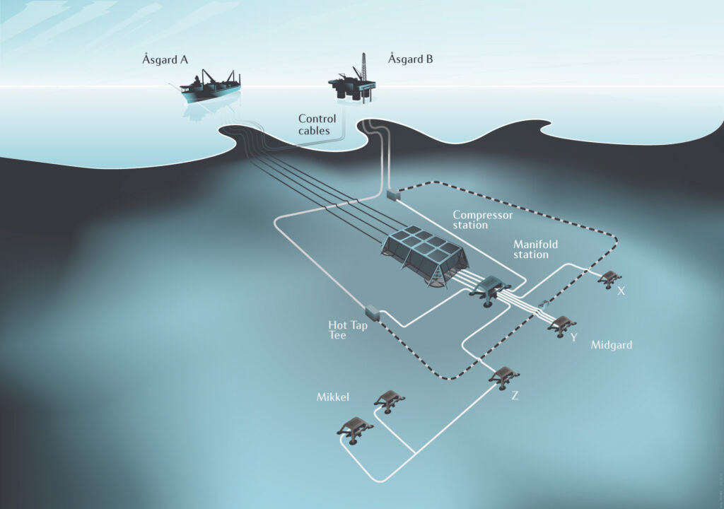 Statoil awarded a contract for a subsea facility to Aker Solutions in October 2010, with construction at the latter’s yard in Egersund south of Stavanger. The delivery comprised a big compressor station, a new manifold station, an extensive system of new pipes and connections, and a high-voltage power module on Åsgard A.[REMOVE]Fotnote: Time, N P and Torpe, H, 2016, “Subsea Compression- Åsgard Subsea Compression, Start-Up and Operational Experience” OTC-27163-MS.