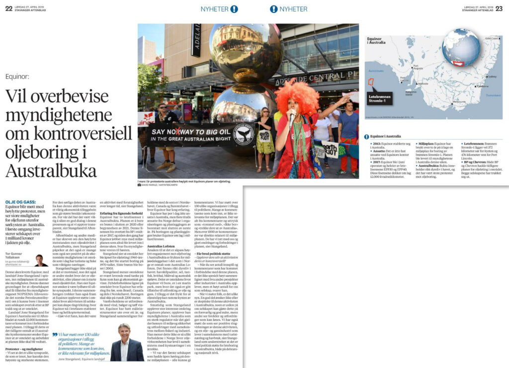 A number of protests were staged against Equinor’s plans in the Bight, and received broad media coverage. In January 2020, the Wilderness Society took the Nopsema decision to court on the grounds that Equinor had failed to consult the local authorities and indigenous population during the process.[REMOVE]Fotnote: NRK/NTB, 25 February 2020, “Equinor dropper omstridt oljeleting i Australbukta”.