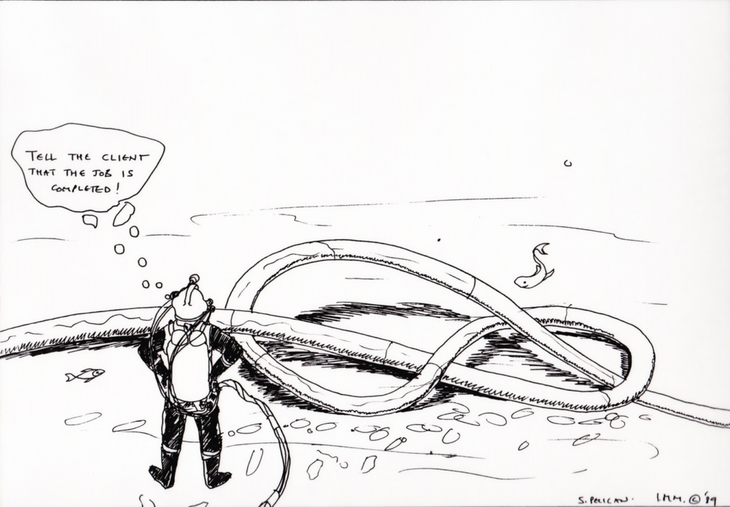 When the template was inspected before production began, a number of bolts turned out to be missing from the flange holes and were lying on the seabed. Two diving support ships, including Seaway Pelican, spent four weeks replacing all the bolts in the pipe flanges on the template, on the pipeline and beneath Edda. That delayed start-up.