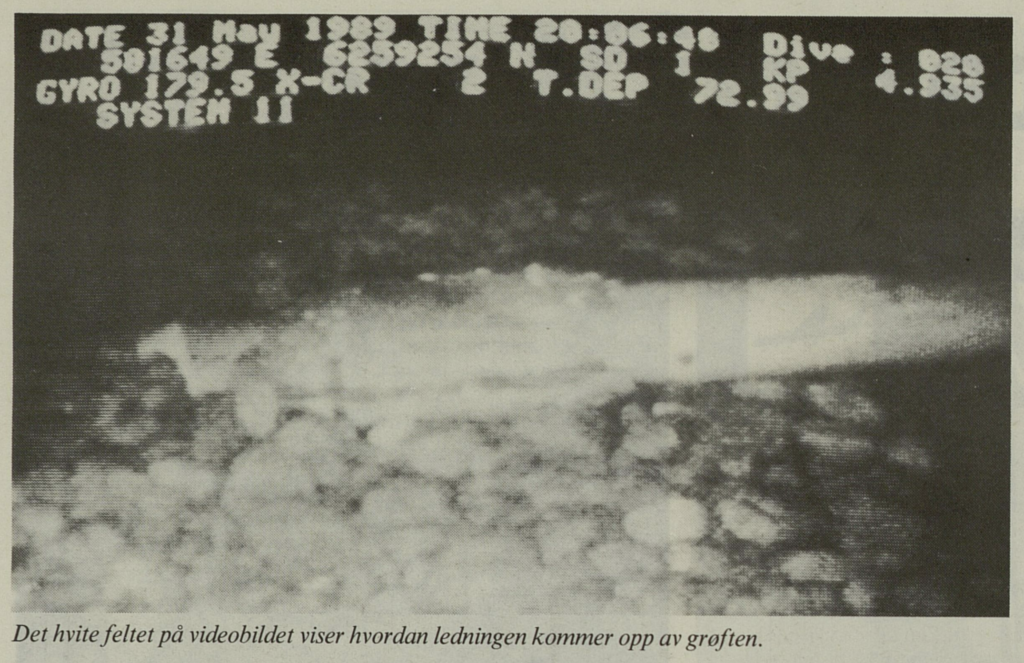 The decision was taken to attach cement supports cast in situ. Specially manufactured plastic “tents” with attached straps were made fast to the pipelines by divers and reached down to the seabed. Each chute had several pockets which were filled with cement through a hose from a ship, starting at the bottom and moving gradually up as each pocket made contact with the pipe.Gravel was subsequently dumped at six upheaval points in an optimum manner which dispersed it both under and over the pipelines. Dumping alone was used for the smallest cases. It took a boatload totalling 8000 cubic metres of gravel to ensure that the transport lines were securely pinned down and could be overtrawled.[REMOVE]Fotnote: This article is mostly based on an interview by Hans Birger Hansen, Olav Bruset and Jarle Aksnes conducted by Kristin Øye Gjerde, 01.12.2015.