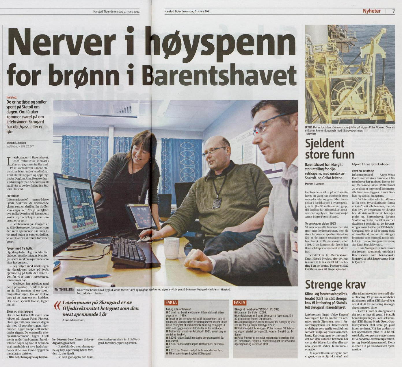 «Det er en tvilling,» fortalte letesjef for Barentshavet Knut Harald Nygård.[REMOVE]Fotnote: Finnmarken 28. desember 2011