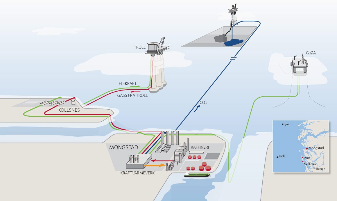 Det tidligere planlagte gasskraftverket på Kollsnes ble aldri realisert. I stedet åpnet det seg en mulighet på Mongstad i Lindås kommune nord for Bergen. På det aldrende raffineriet som var eid av Statoil (79 prosent) og Shell (21 prosent), gikk mye varmeenergi til spille. Det ble planlagt et nytt, gassfyrt kraftvarmeverk som skulle være integrert med raffineriet og som kunne forbedre effektiviteten betydelig.
