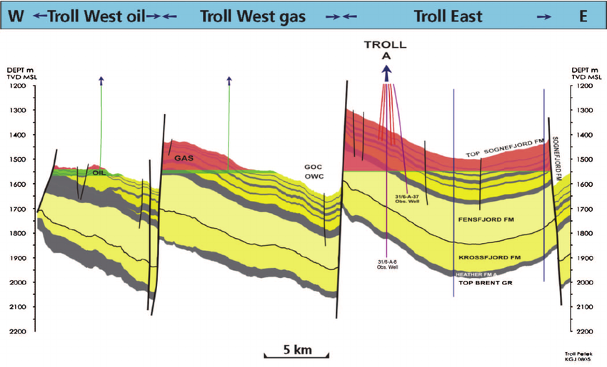 Reservoaret i Troll ligger omtrent 1300 meter under havnivå og består av sedimenter avsatt på relativt grunt vann, godt sortert av strøm og bølger, såkalt grunnmarin sand.