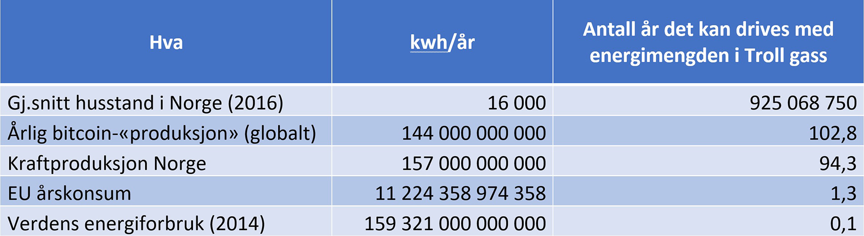 Gassvolum er kanskje ikke noe som er lett for en vanlig forbruker å ha et forhold til, så vi kan fortsette omvandlingen. Gjør vi om gassvolumet i Troll til energimengden i en «kjent» størrelse, nemlig kilowattimer (kWh), så får vi: