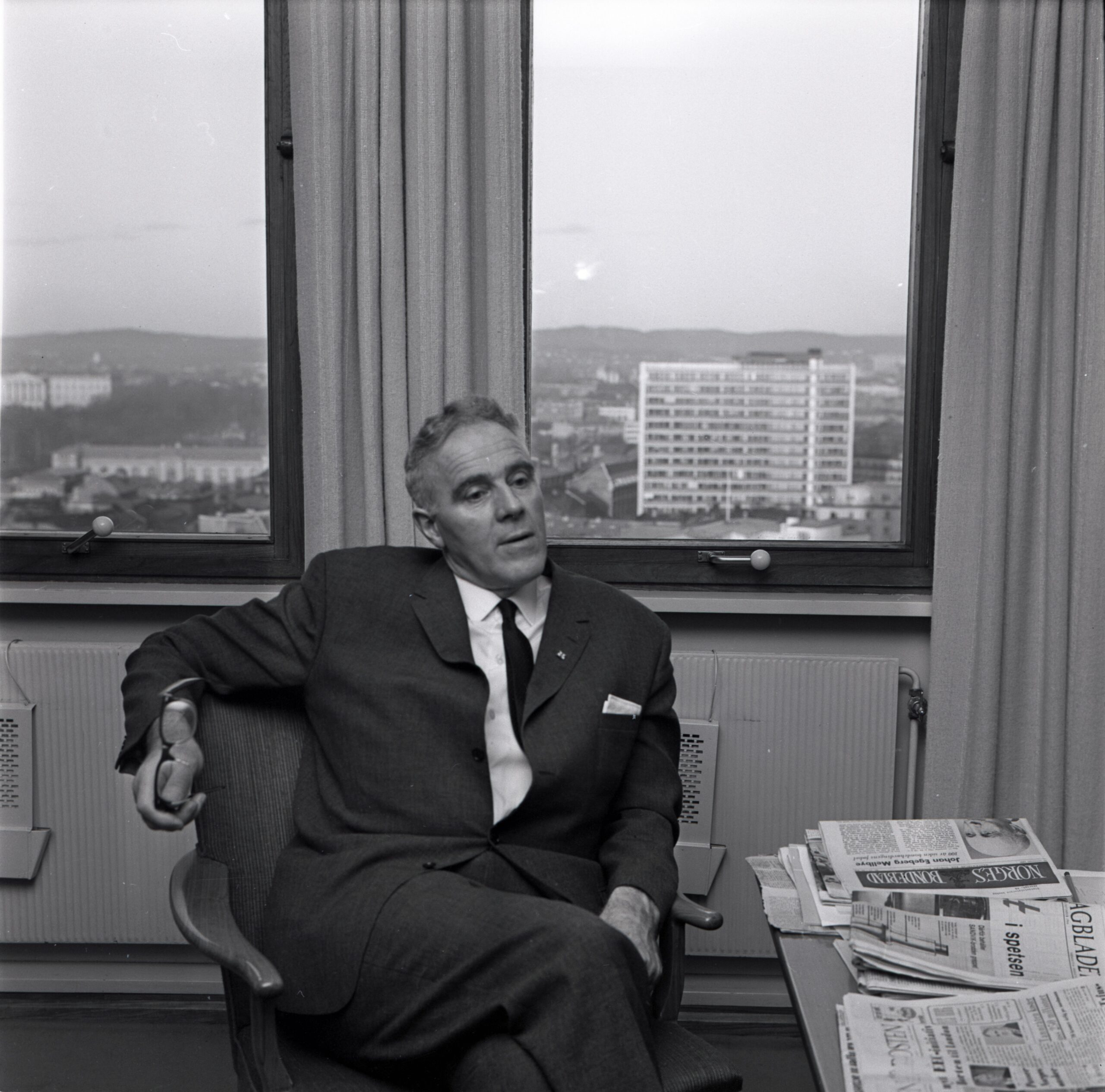 I det jeg viser til samtale med banksjef Otto Norland på mitt kontor 9. oktober d.å., bekrefter jeg hermed at jeg er interessert i å øke den norske stats andel av aksjene i Norsk Hydro A/S fra 47,72 til minst 51 pst.