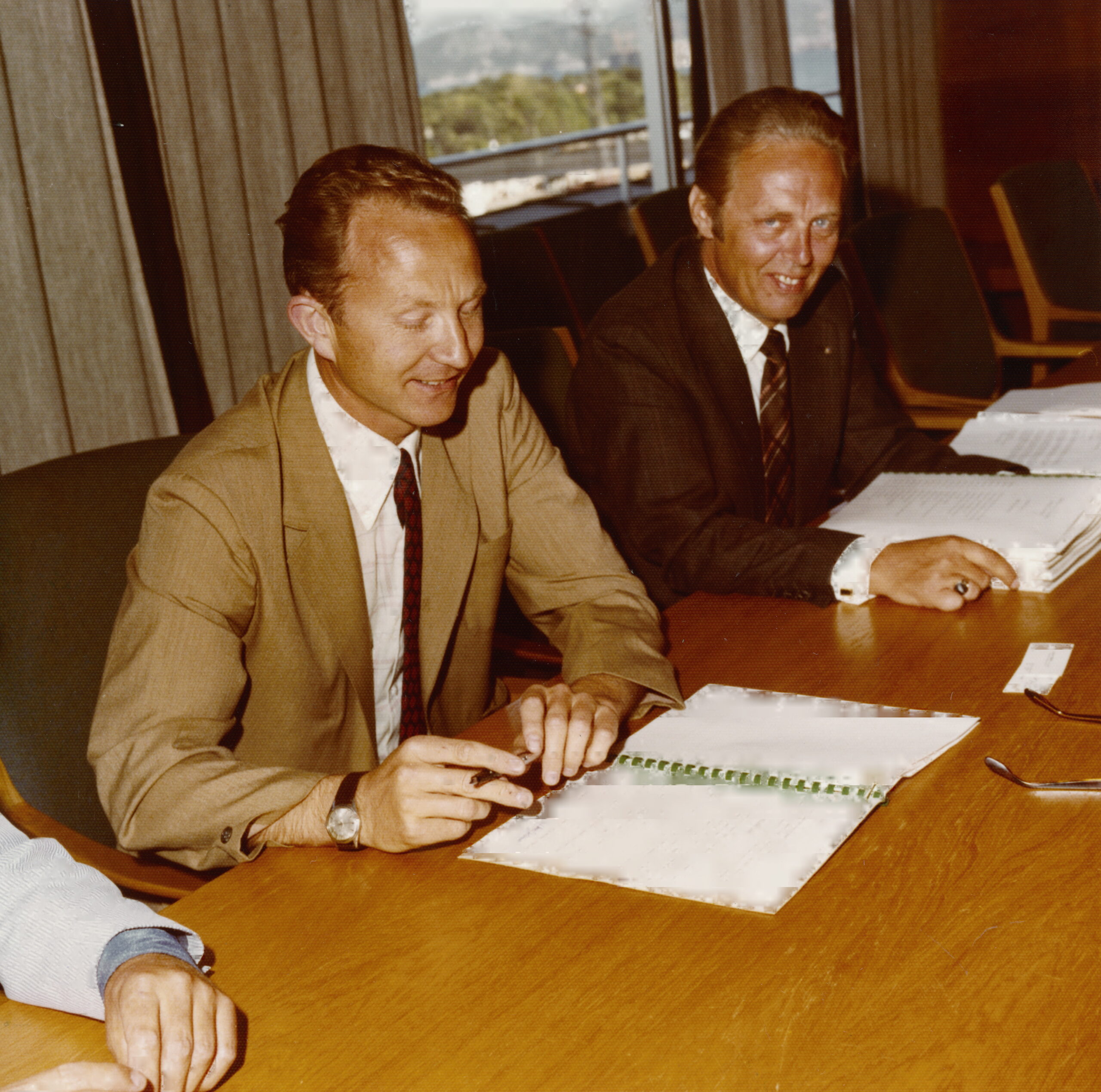 Undertegnelsen av kontrakten mellom A/S Vestfold og A/S Rosshavet, og leie av Boreplattformen «Ross Rigg» 25. Juni 1974. Foto: Equinor