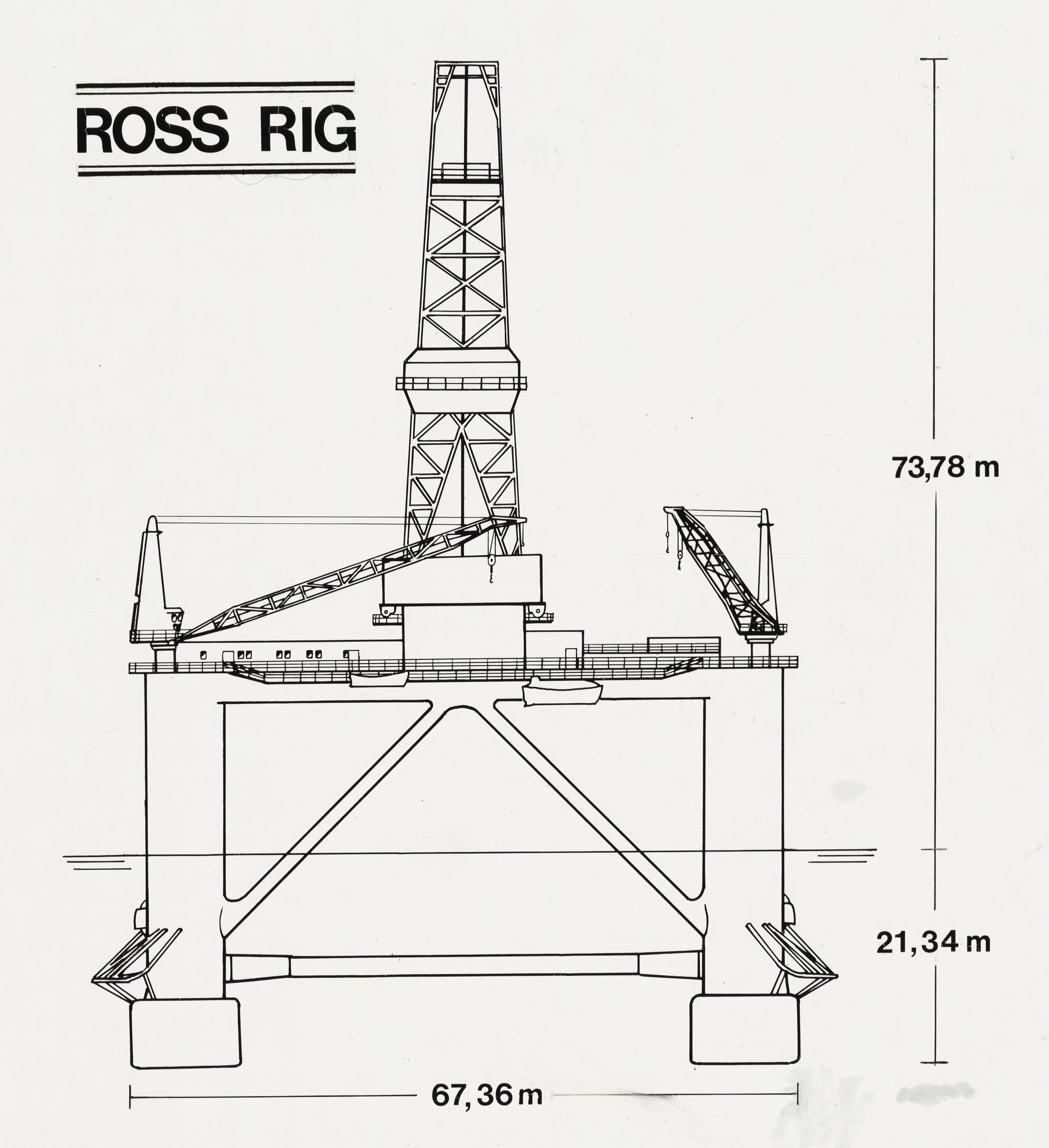 Mål av Ross Rig, sett fra kortsiden.
