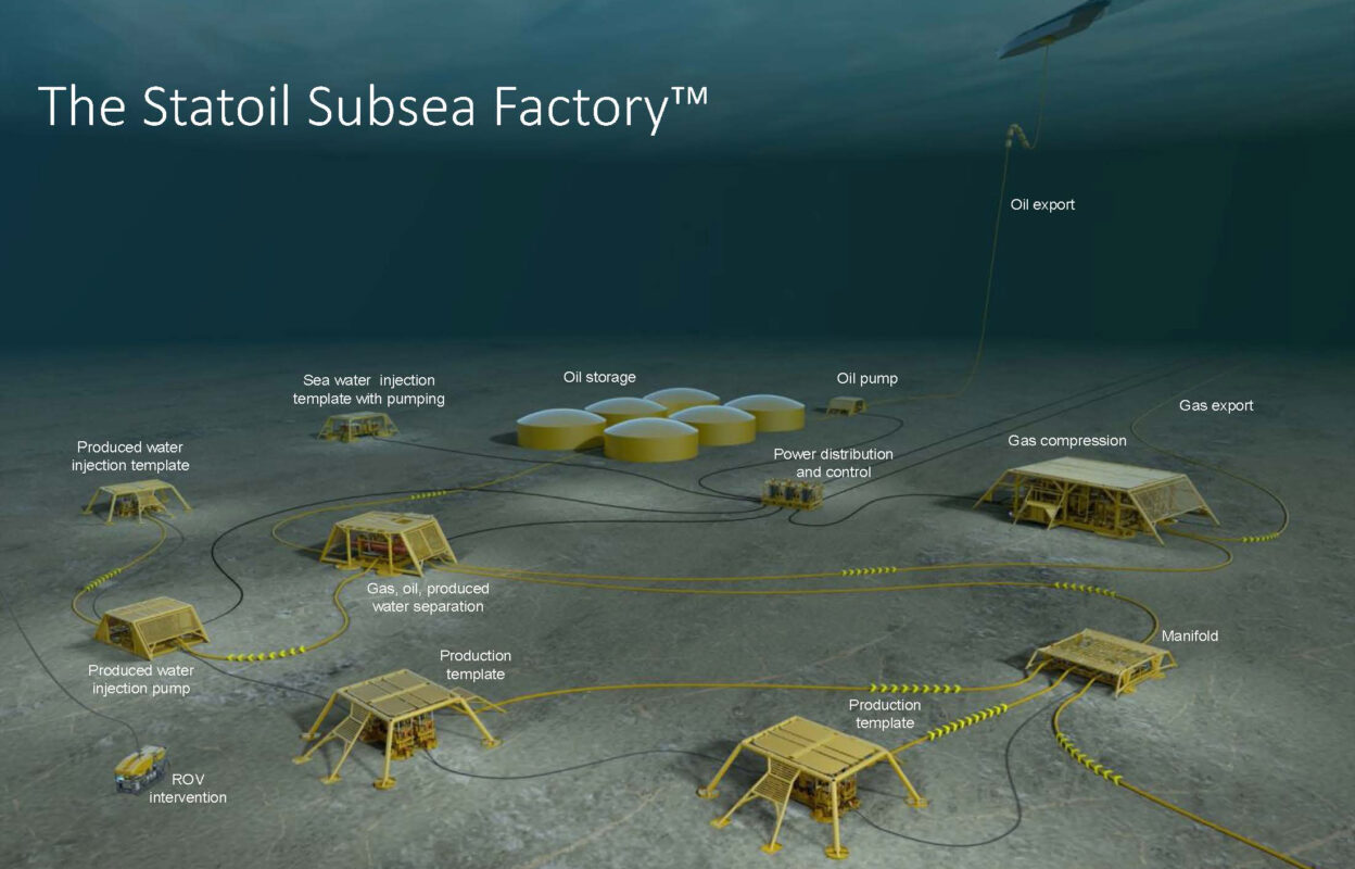 Smarte ingeniører har funnet ut at ved å skille ut dette vannet på havbunnen, så nær toppen av brønnen (brønnhodet) som mulig, vil en oppnå flere fordeler. For det første vil brønnstrømmen minus vann flyte lettere opp mot plattformen. Det vil bidra til økt produksjon. For det andre: Ved å sprøyte det utskilte vannet tilbake i en nærliggende formasjon, kan det bidra til å opprettholde trykket i reservoaret, noe som igjen har potensial for ytterligere økt produksjon. Et tredje element er at ved å plassere vannbehandlingsanlegget på havbunnen, vil det ikke være behov for et tilsvarende anlegg på plattformen. Det letter vekten plattformen må bære, noe som sparer kostnader ved design og bygging.[REMOVE]Fotnote: Utstillingen Ned i dypet, Norsk Oljemuseum, 2021.