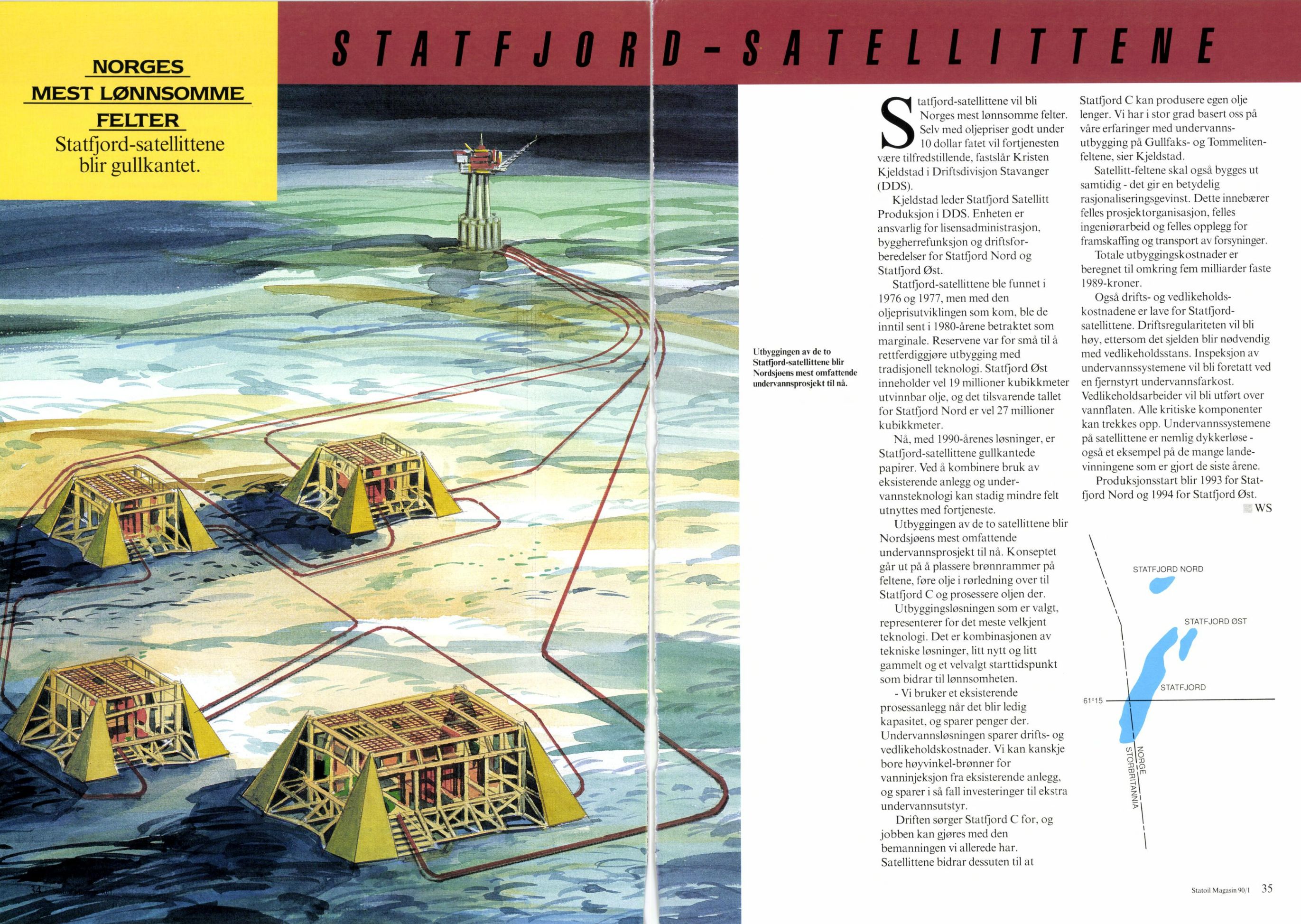 Plan for utbygging og drift (PUD) av satellittfeltene Statfjord Øst og Nord ble godkjent av Stortinget 11. desember 1990, og kontrakten mellom Statoil og Kongsberg Offshore Systems (KOS), som det da het, kunne undertegnes.