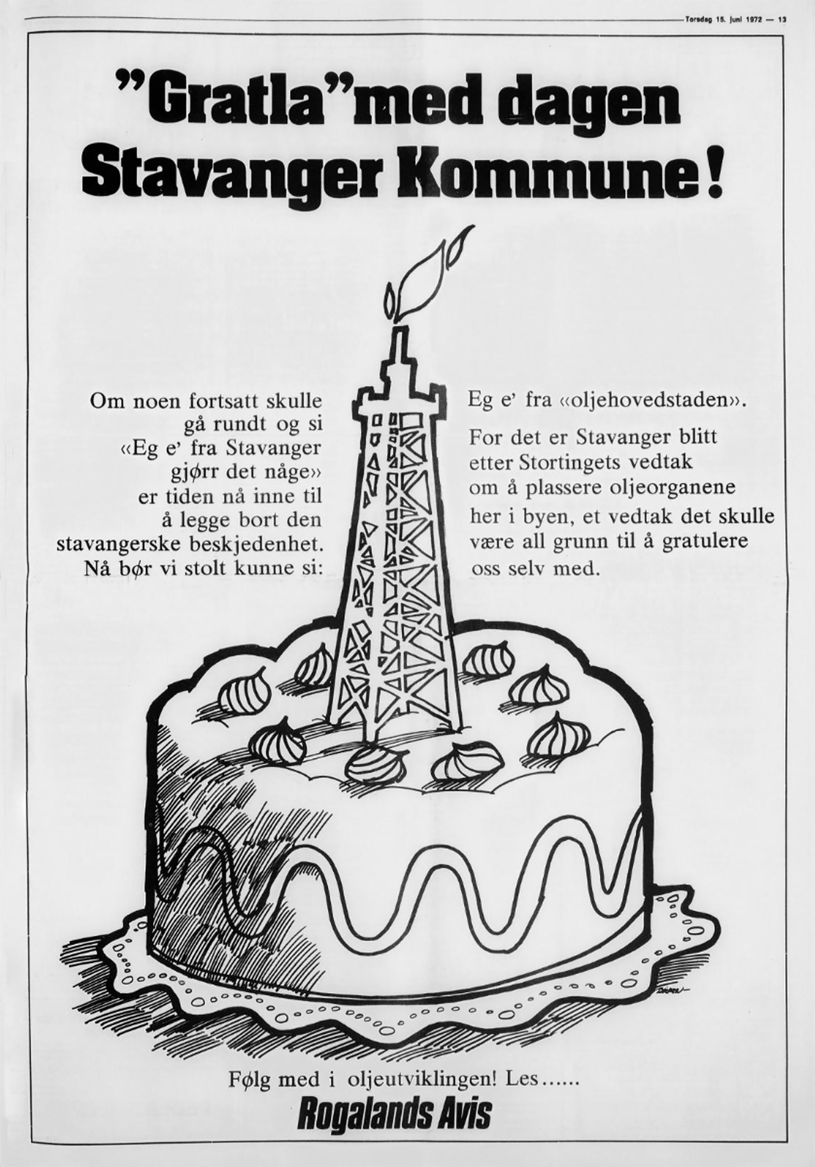 La ikke det statlige oljeselskap starte sin virksomhet med det alvorlige handikap det vil være å bli lokalisert til steder som ligger i betryggende avstand fra de områder hvor oljeaktiviteten foregår og kommer til å foregå i mange år fremover.[REMOVE]Fotnote: Stortingsforhandlinger (ib. utg.). 1971/72 Vol. 116 Nr. 7c, Forhandlinger i Stortinget nr. 456. https://equinor.industriminne.staging.netpower.cloud/wp-content/uploads/sites/8/2022/06/1971-72-St.prp_.-113-Opprettelse-av-statens-oljedirektorat-og-et-statlig-oljeselskap-m.m..pdf