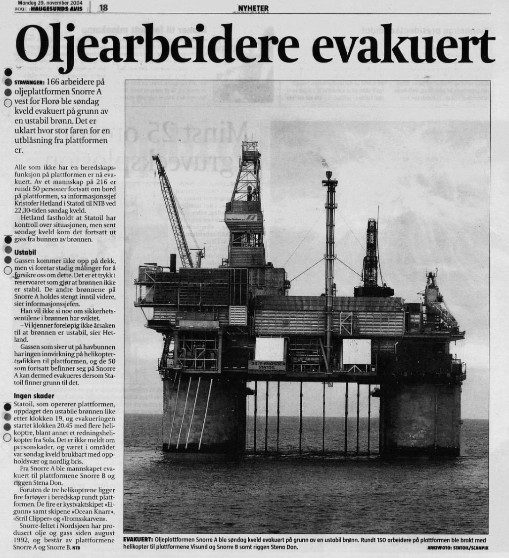 Utblåsningen på Snorre A – enormt storulykkepotensial