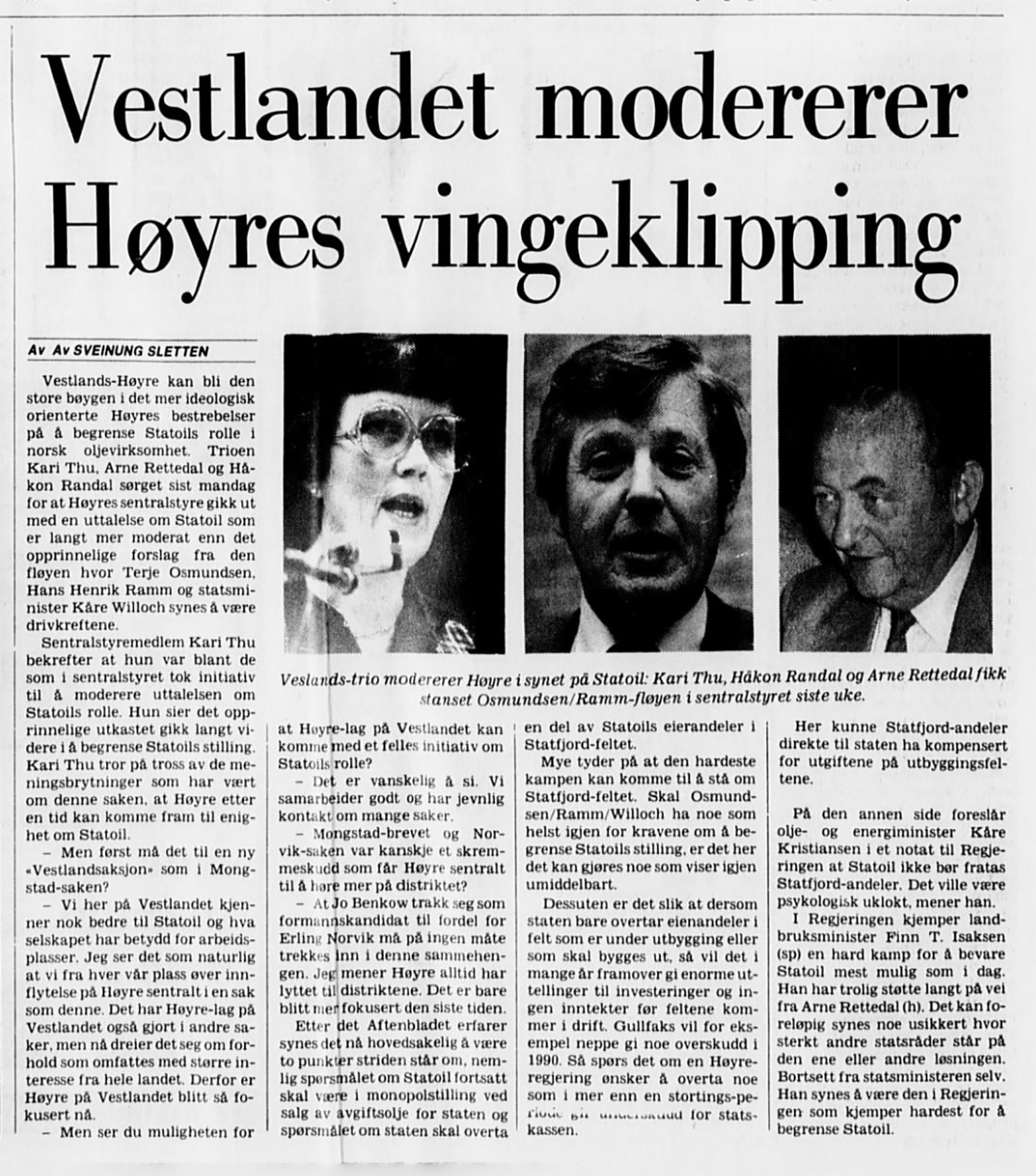 «Ingen innenfor Statoils ledelse ønsket i går å kommentere innstillingen, men overfor Arbeiderbladet ble det sagt: Dette er ingen vingeklipping – det er en amputasjon!»